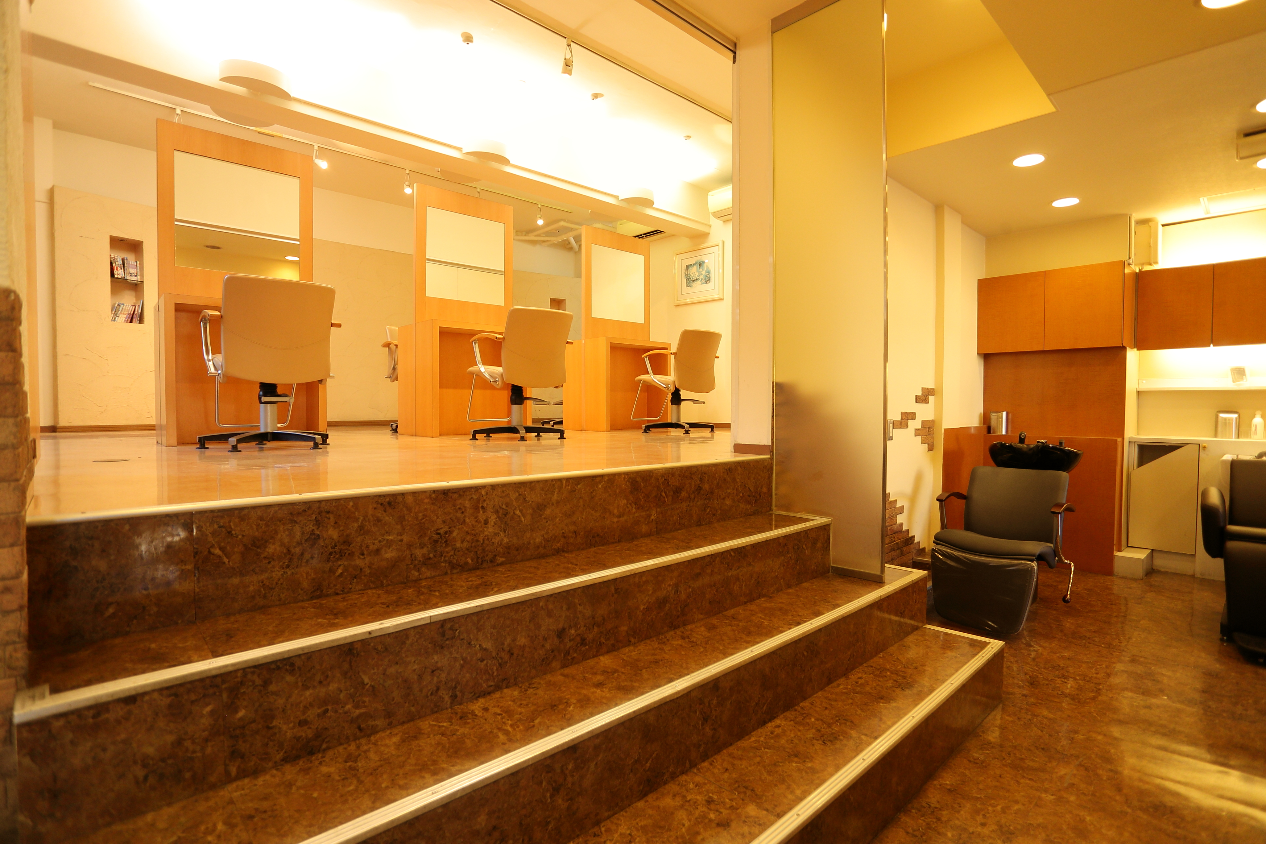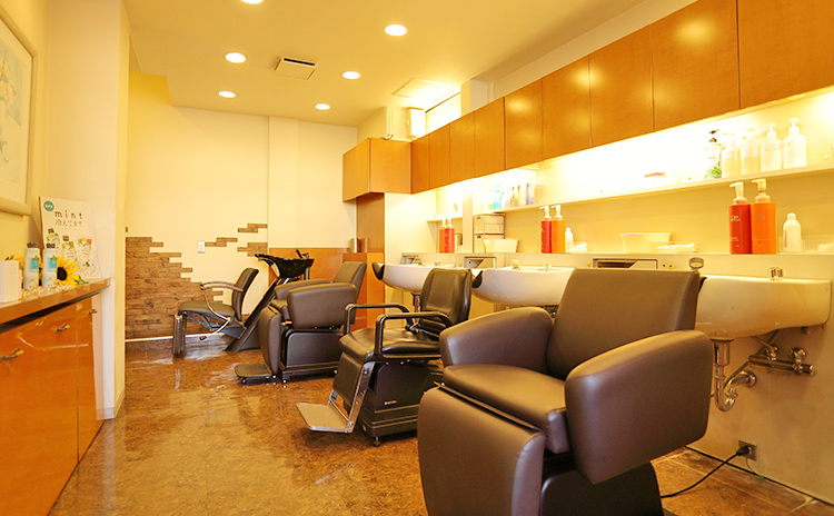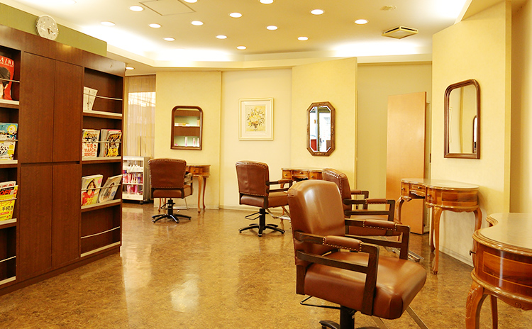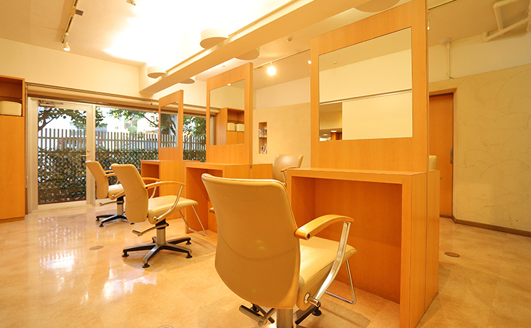 津田沼駅最寄りの美容室 美容院スゥカルムは、暖かみのある店内設計とゆったりしたセット面でお客様をお出迎えいたします。